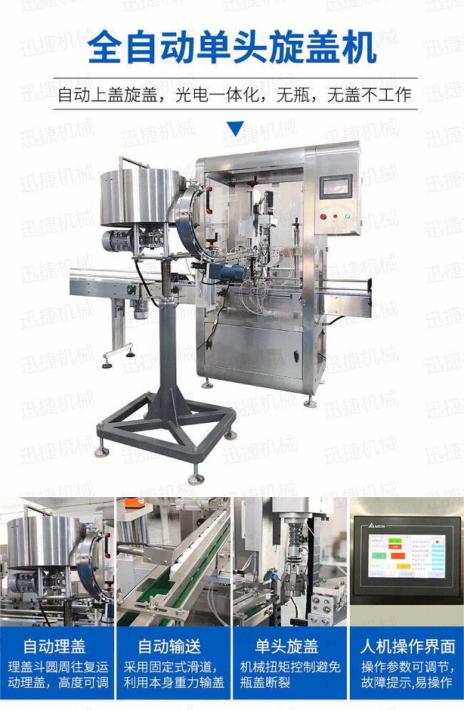 自動旋蓋線是我司在吸收技術(shù)的基礎(chǔ)上研發(fā)的一款新型自動生產(chǎn)線,特別適用于中小劑量液體灌裝和各種圓形瓶蓋,泵頭蓋,噴頭蓋,鴨嘴蓋,噴槍的鎖蓋。同時適用各種材質(zhì)圓形、異形瓶,各種規(guī)格的瓶子灌裝旋蓋。微電腦自吸蠕動泵自動定量、氣動感應(yīng)定位灌裝(根據(jù)需要也可不選配升降灌裝結(jié)構(gòu))等。具有灌裝平穩(wěn)、操作簡單、高速分裝、旋蓋等優(yōu)點。廣泛應(yīng)用于醫(yī)藥、日化、飲料,酒水等行業(yè)。