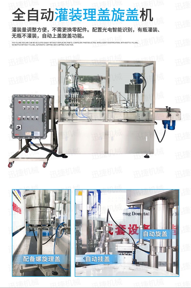 1.自動理瓶、灌裝、壓蓋、旋蓋、貼標。