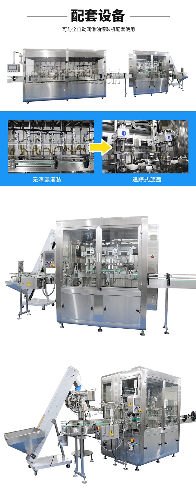 2、品質(zhì)高:跟隨式旋蓋,旋蓋過程不停頓,不晃液,不污染瓶口、瓶身及輸送帶,確