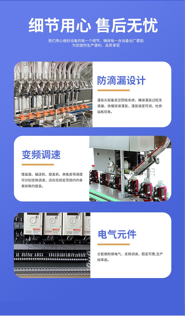 本機適用于多種材質,多種幾何形狀的容器,如塑料片、玻璃瓶、金屬瓶等;在需要更換瓶或蓋的時候,只要調整部分零件的位置即可,無需更換任何配件;在旋蓋過程中可以做到無瓶不下蓋。理蓋器、輸送機、旋蓋機、夾瓶皮帶速度可分別變頻調速,適應在規定范圍內的各類規格的旋蓋。(附:特殊規格定制即可)