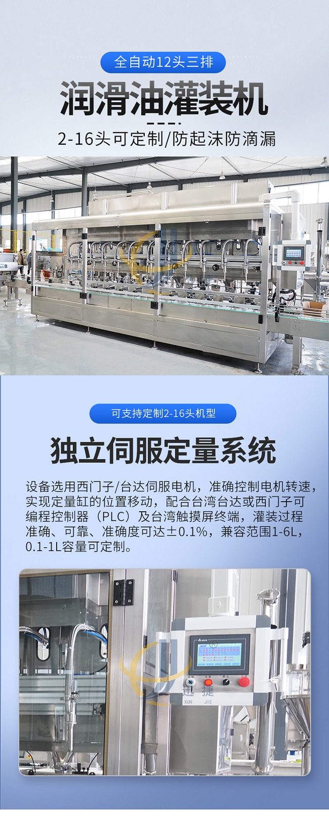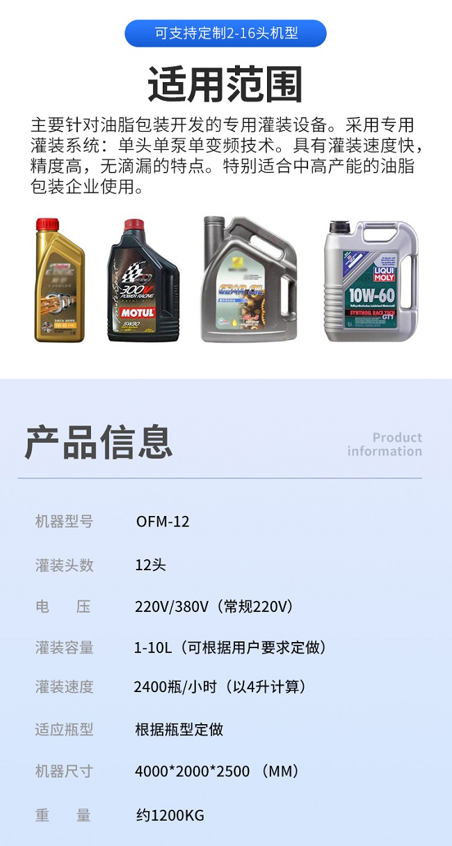 這款全自動(dòng)十二頭三排潤(rùn)滑油灌裝機(jī)是本公司專(zhuān)為潤(rùn)滑油廠(chǎng)家研發(fā)的自動(dòng)化設(shè)備,這款潤(rùn)滑油灌裝機(jī)2-16頭可定制,防起沫防滴漏。主要針對(duì)油脂包裝開(kāi)發(fā)的專(zhuān)用灌裝設(shè)備。采用專(zhuān)用灌裝系統(tǒng):?jiǎn)晤^單泵單變頻技術(shù)。具有灌裝速度快,精度高,無(wú)滴漏的特點(diǎn)。特別適合中高產(chǎn)能的油脂包裝企業(yè)使用。