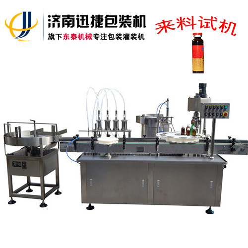 全自動口服液灌裝壓塞機為小劑量灌裝設備。適用于醫藥行業口服液等小劑量藥品的灌裝,在引進國外技術的基礎上,由公司自主研發的,采用進口的凸輪分度工位器,精度高,質量好,結構緊湊,運行平穩,有利于增強使用年限。能自動完成口服液瓶的洗瓶、烘干、灌裝和封口等動作,是口服液生產廠家較好的配套設備,完全符合GMP要求。