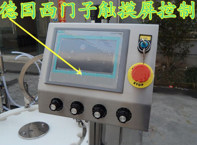 本機是在引進和吸收國外技術的基礎上,由我公司自主研發的一款專業針對各類液體的西林瓶灌裝機。10-50ml玻璃瓶鋁蓋糖漿灌裝機采用活塞定量,集機電、氣動于一體,電器和氣動元件選用工廠,由觸摸屏,PLC控制,設計合理,結構緊湊,外形美觀,具有性能穩定可靠、灌裝精度高、適應性強、操作簡單、維護方便等特點。
