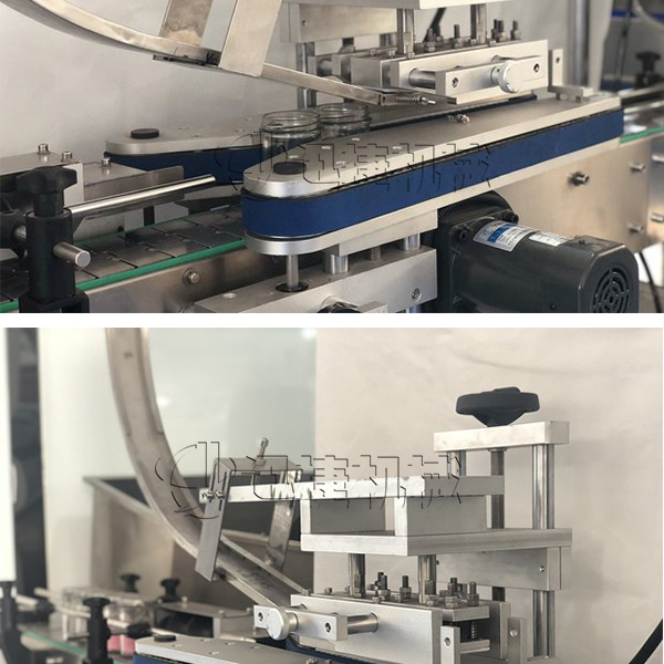 玻璃瓶封口機設備采用氣囊式全密封真空式結構,旋合式旋蓋原理,真空度可按需設定。瓶蓋預旋緊機構:理蓋落蓋到瓶口后,對馬口鐵蓋進行預旋,保證蓋子旋鈕點準確進入到瓶口旋絲內,100%保證抽真空及旋蓋效果。解決了客戶擔心真空度的問題。
