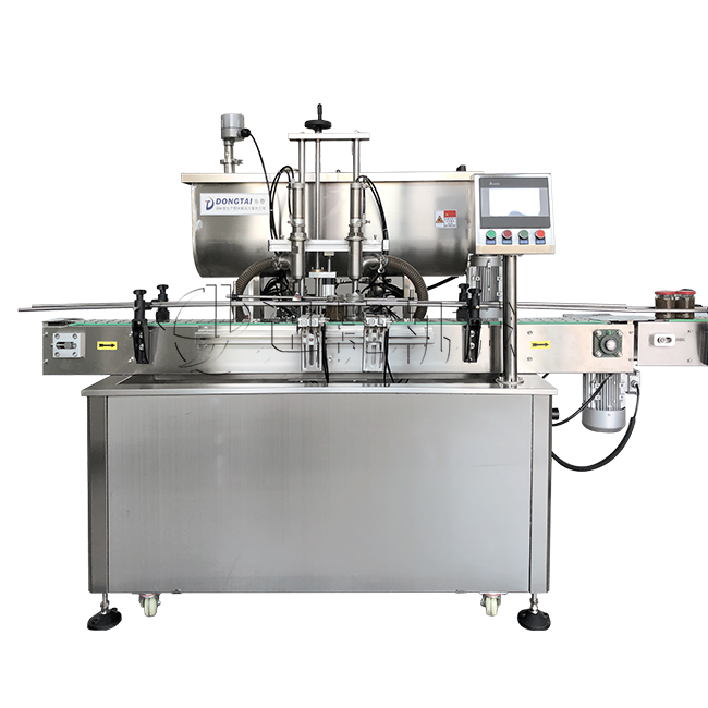 3、  該設備在設計上大大縮短了下料斗到灌裝頭的灌裝距離,克服了含油量大的物料(如:含芝麻粒的辣椒油)在灌裝過程中出現的有些瓶油多,有些瓶醬多的灌裝誤差大的缺點。