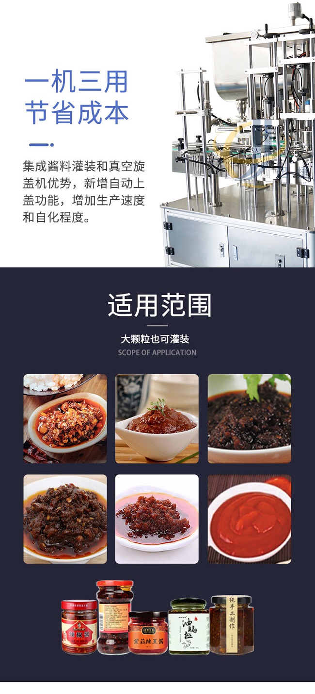現(xiàn)在的生活節(jié)奏也比較快,牛肉醬也比較方便購買,網(wǎng)上、超市都有的售賣,所以許多的商家開始與全自動牛肉醬灌裝機廠家直銷進行合作,全自動牛肉醬灌裝機您知道如何選購嗎?這時候在灌裝顆粒比較大或者比較粘稠或比較干的醬料的時候,我們?nèi)詣优H忉u灌裝機采用柱塞式進行計量,保證定量準(zhǔn)確可靠,可用于多種瓶型,換瓶型只需要更換一套模具,模具更換的時間約為15分鐘左右,為了迎合社會發(fā)展的主題,全自動牛肉醬灌裝機效率高,幫助了很多企業(yè)解決了人工難題也更受消費者歡迎。