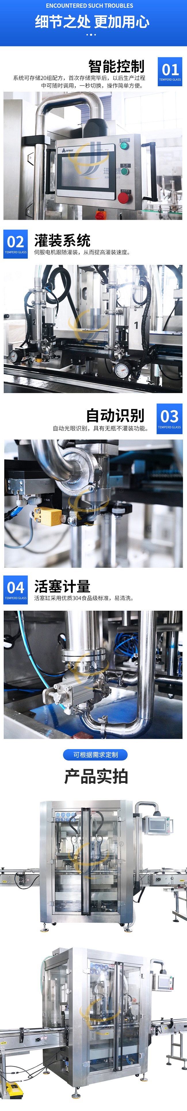 隨著現(xiàn)代經(jīng)濟飛速發(fā)展,人們的生活品質(zhì)都大大提高了,現(xiàn)在大家對于調(diào)味醬肯定都不陌生了,現(xiàn)在市場上各種各樣的調(diào)味醬深受人們的喜愛,例如有牛肉醬、香菇醬、甜辣醬、番茄醬等等,調(diào)味醬市場競爭激烈,要想吸引人們的購買欲,包裝肯定是必不可少的,所以許多商家開始與全自動調(diào)味醬灌裝機設(shè)備生產(chǎn)廠家合作。那么很多客戶不知道全自動調(diào)味醬灌裝機設(shè)備哪家好,這里小編推薦濟南迅捷,公司多年來一直勇于創(chuàng)新,以市場的需求為最重要的,引進了先進的技術(shù),生產(chǎn)的全自動調(diào)味醬灌裝機設(shè)備不僅在質(zhì)量,品質(zhì)上都很棒而且還具備了使用壽命長,操作簡單,灌裝精準等等一系列優(yōu)點。全自動調(diào)味醬灌裝機設(shè)備滿足了客戶的一系列要求給企業(yè)帶來了很大的利潤。